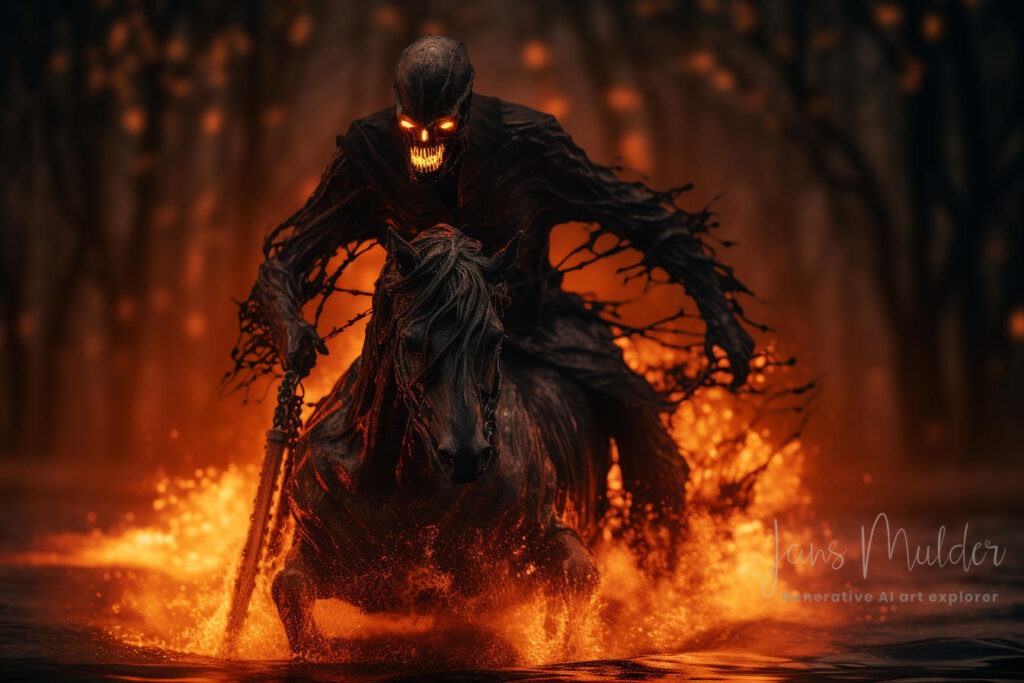 En ten slotte, de Vierde Ruiter, die vertegenwoordigt de dood en het graf. Hij belichaamt dat onvermijdelijke einde waar we allemaal op wachten. Deze ruiter symboliseert onze sterfelijkheid, de cyclus van leven en dood, en de existentiële overpeinzing van ons eindige bestaan. De aanwezigheid van de dood herinnert ons eraan dat we sterfelijk zijn en benadrukt het belang van hoe we ons leven leiden.