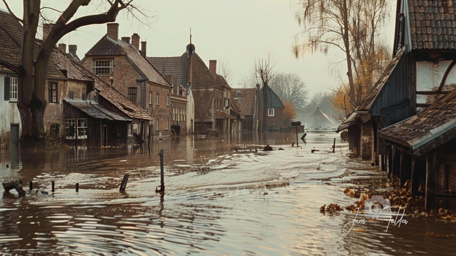 Johannes woonde met zijn gezin in een bescheiden huis aan de rand van het dorp, dicht bij de zeedijk. Het water stond die nacht ongenadig hoog, en terwijl de wind huilde als een verloren ziel, zagen ze hoe de vloedlijn steeds dichterbij kroop. De huizen die ooit als bolwerken tegen de elementen hadden gestaan, bezweken één voor één. Ook het huis van Hendrik, een nabijgelegen kleermaker, begon te beven en te kreunen onder de druk van de natuurkrachten.