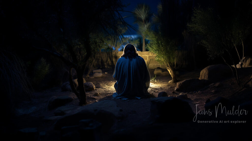 In de tuin getuigen Jezus’ angst en overgave van de diepte van zijn liefde en toewijding. Zijn gebed draagt het gewicht van de menselijke zonde die hij vrijwillig op zich neemt, belichaamt Gods mededogen en effent het pad voor de ultieme overwinning op zonde en dood.