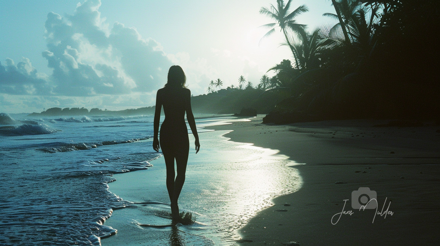 Geruisloos rolden de golven op het witte zand. Witte, pluizige wolken zweefden over de kristalheldere hemel, waar de brandende zon langzaam zakte in de uitgestrekte horizon. Haar stralen gaven het landschap een betoverend schouwspel. Bij elke stap die ze op het zachte en zijdeachtige zand zette, kriebelde het tussen haar tenen, terwijl het zich aan haar hiel vastklampte. Het water speelde speels met haar, haar doordrenkend met het zilte vocht. De prachtige helderblauwe lucht veranderde al snel in een levendig oranje, om vervolgens te vervagen naar een diepere tint paars.