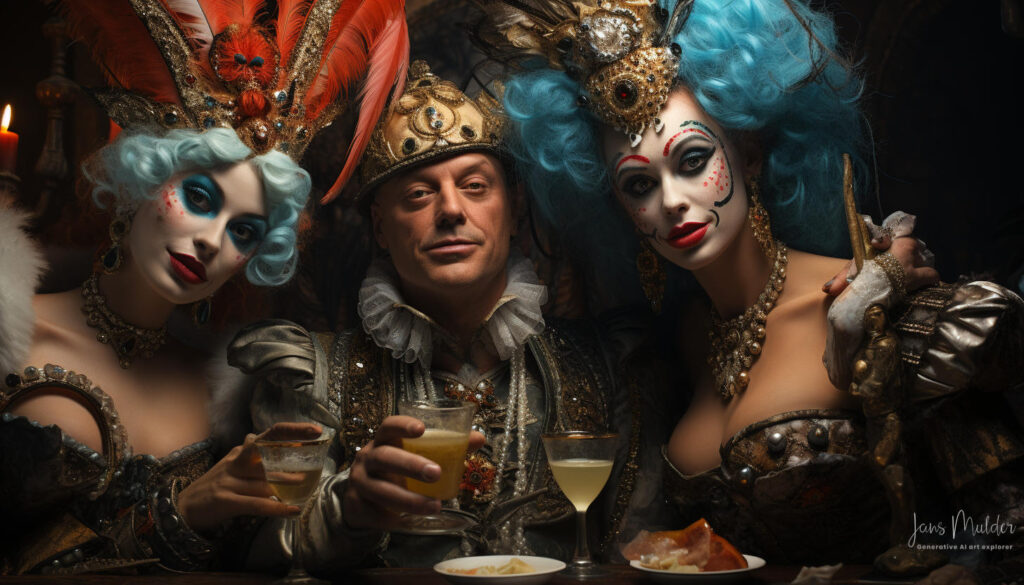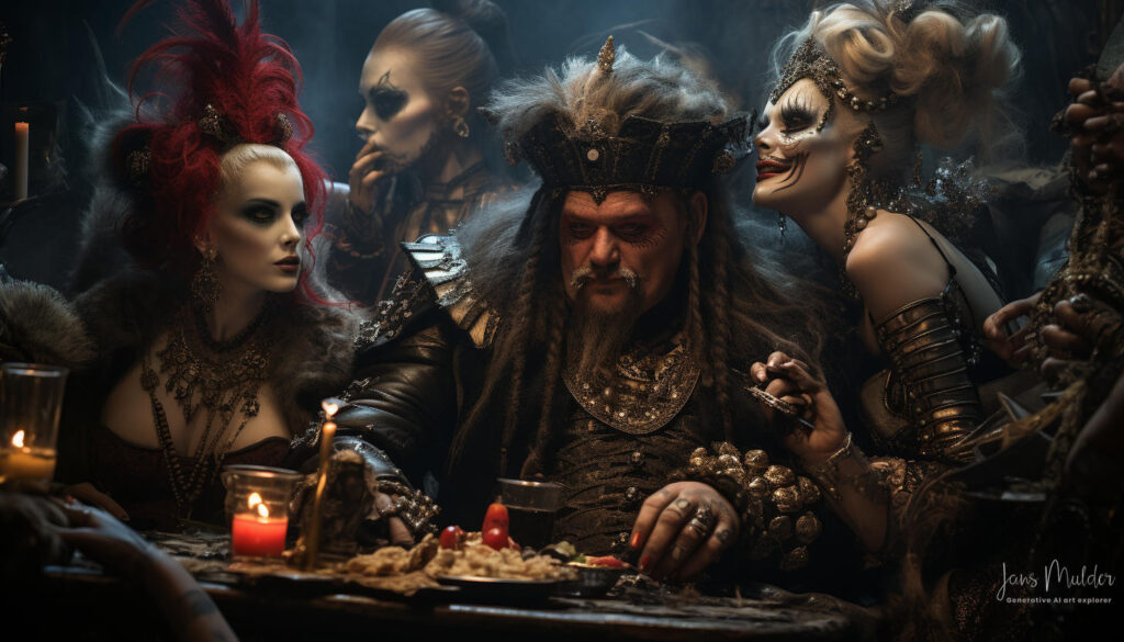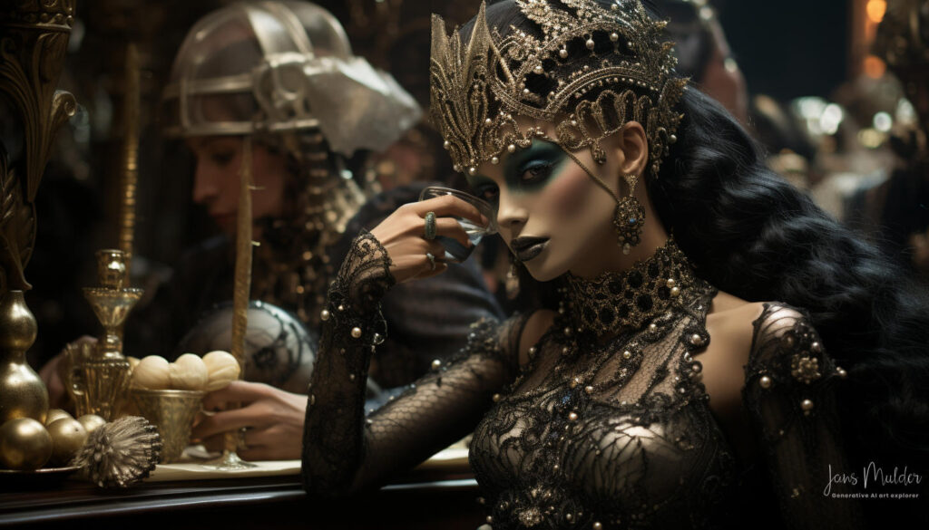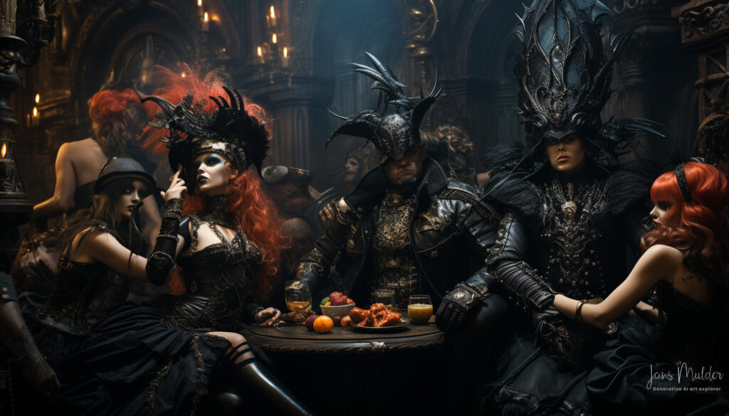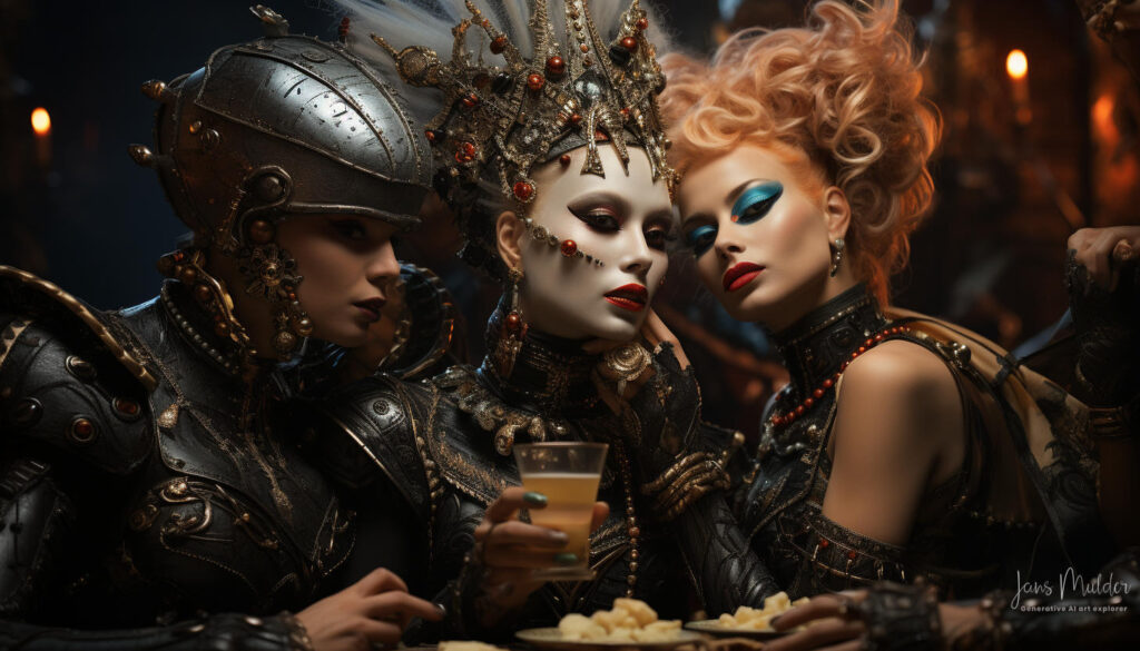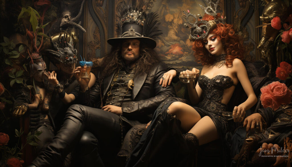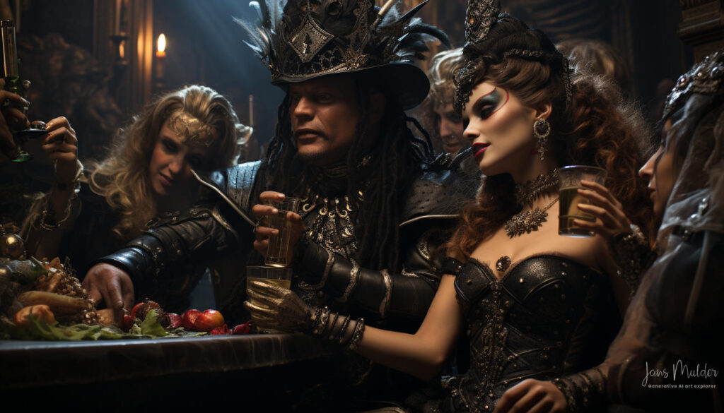 De glazen werden vastgehouden maar nauwelijks van gedronken, terwijl valse glimlachen als maskers van onbehagen werden opgezet. Lachen klonk hol, als een echo zonder ware vreugde. De muziek speelde op de achtergrond, maar haar tonen misten hun gebruikelijke betovering, verloren in een oceaan van gedachten die elk individu in hun greep hield.