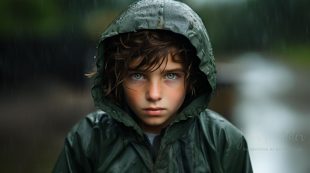 Ik klemde mezelf even stevig vast aan een hek bij een weiland, mijn handen verankerd aan mijn lichaam. In de verte kon ik de storm zien woeden, een ware terreur die de nabijgelegen stad teisterde. Ik kon zelfs het lichte geroffel van hagelstenen horen terwijl ze neerdaalden als een angstaanjagend gordijn. De storm naderde. De lucht begon luid te rommelen. In de verte flitste een bliksem op. Terwijl mijn moeder zich zorgen maakt, kon het mij niets schelen. Ik was zo dapper als ik maar kon zijn. Ik rende door de regen, doorweekt tot op het bot. Een beetje regen zou me niet tegenhouden.